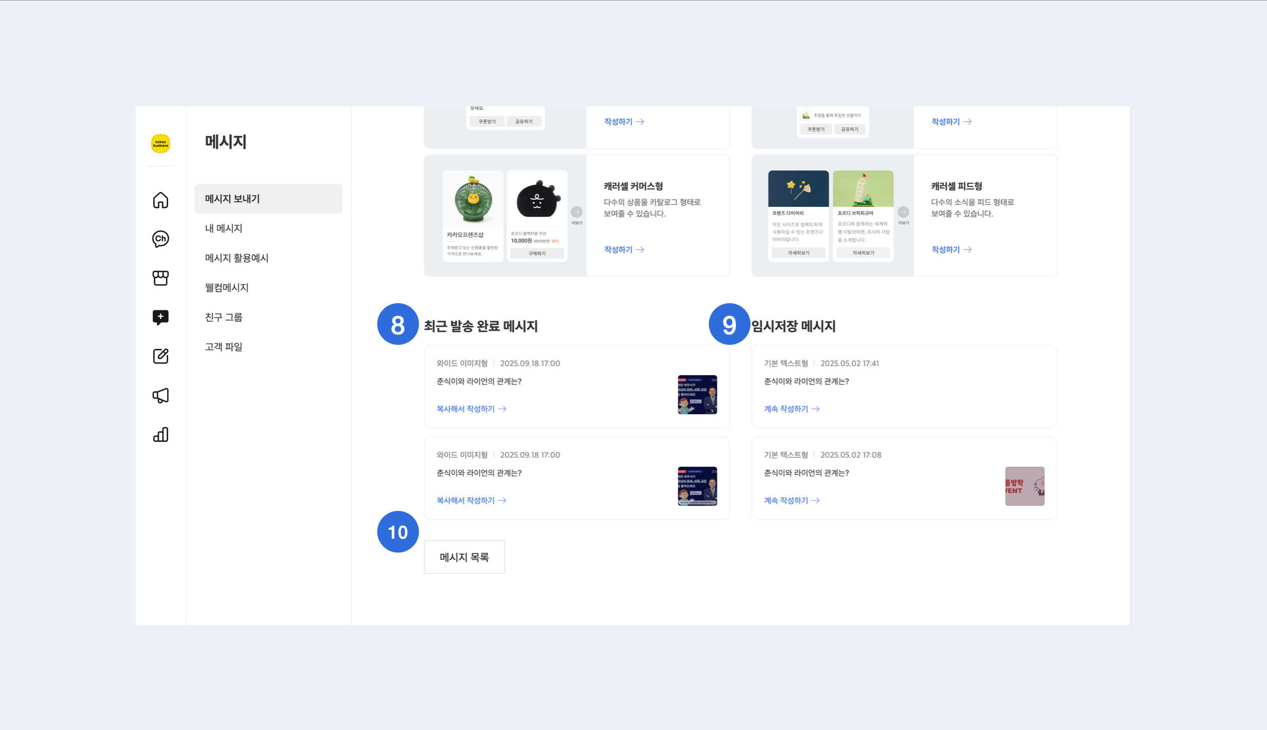 **❽ 최근 발송 완료 메시지**\