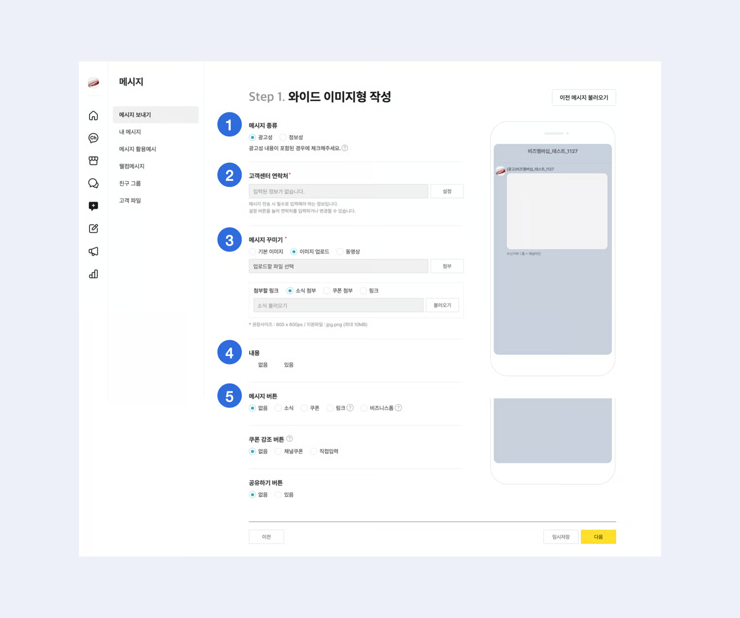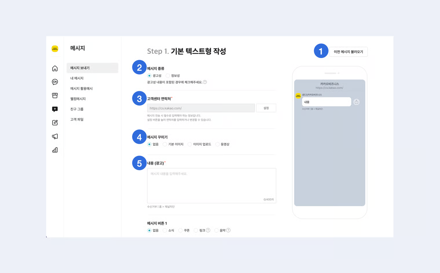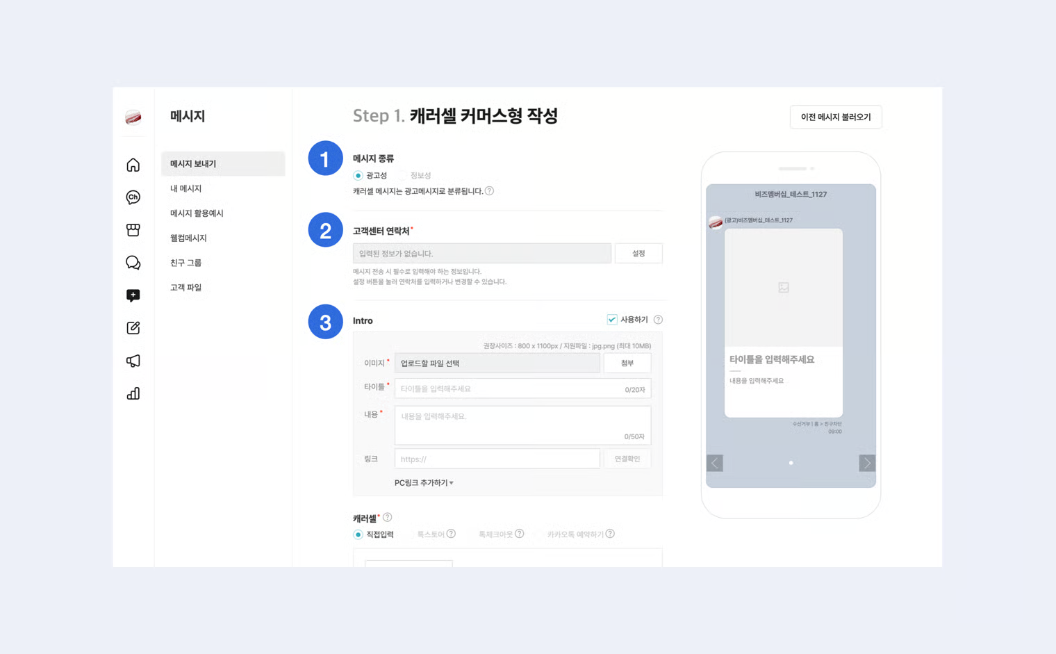 ### 1-1. 메시지 유형 선택&#x20;