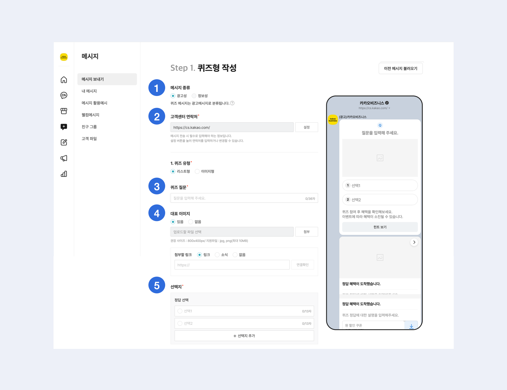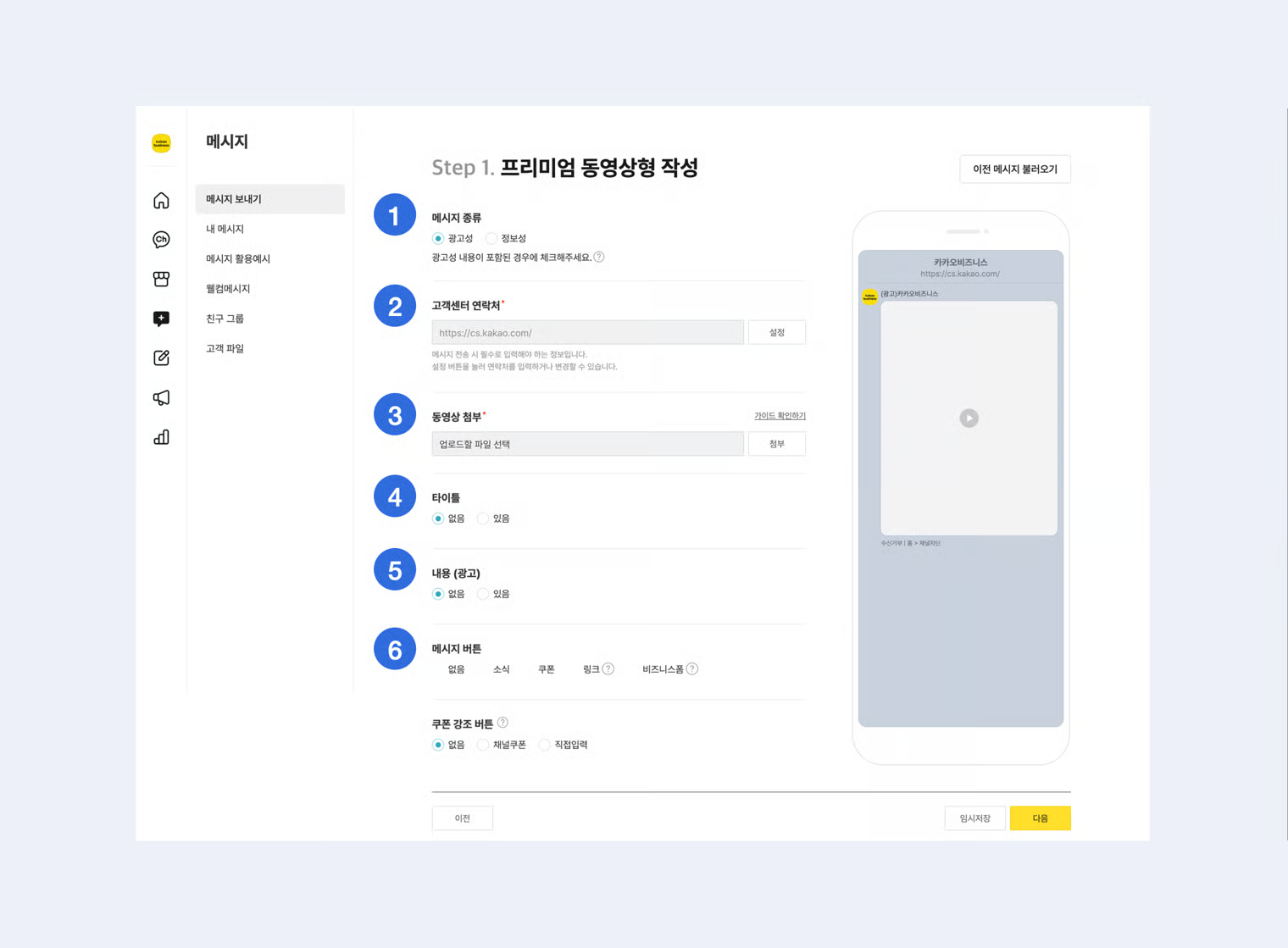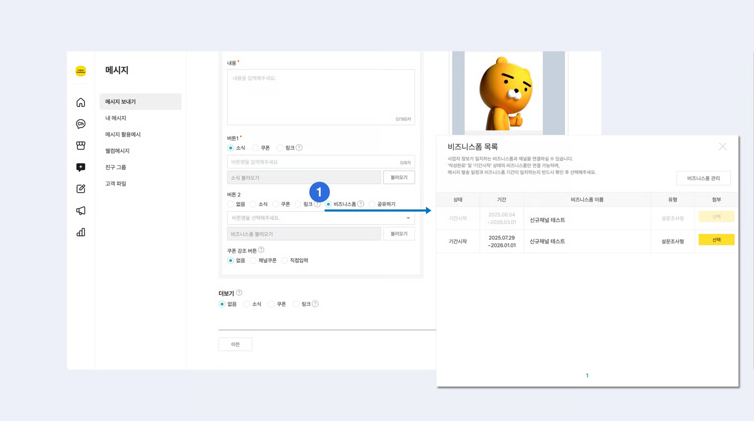 ### 1-1. 메시지 유형 선택&#x20;