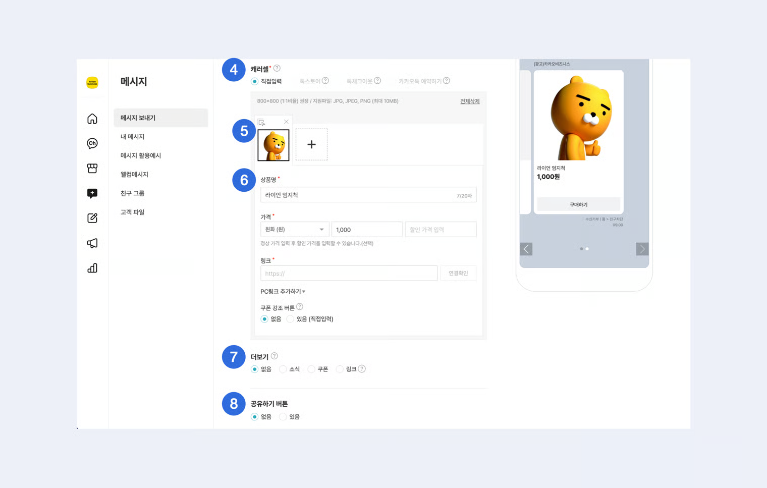 3\) 일반 유통이 불가하거나 불법적인 상품은 메시지 발송이 불가합니다.
