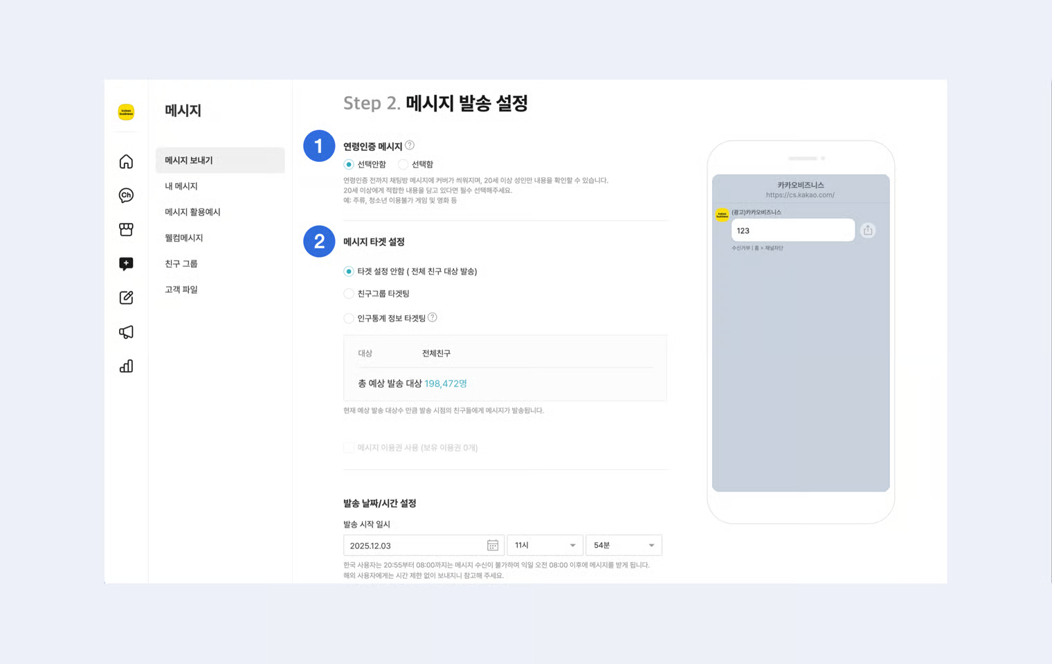 1\) 인터넷 광고가 금지된 상품은 메시지 발송이 불가합니다.