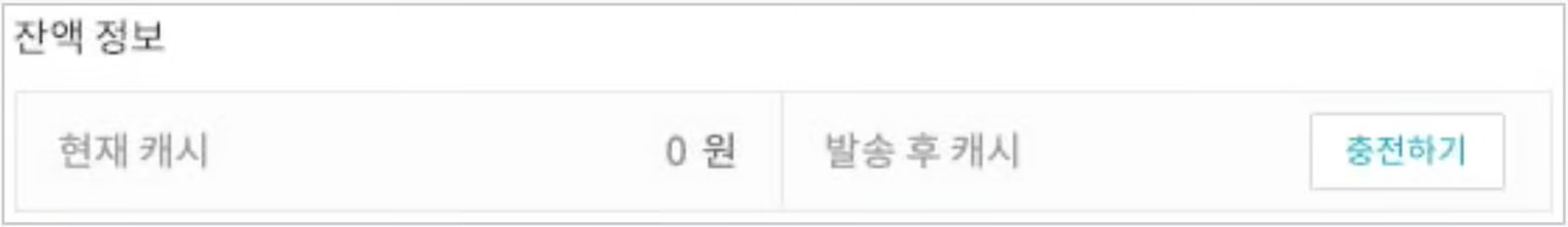 **캐시 충전에 대한 안내는** [**월렛 정보/캐시**](https://kakaobusiness.gitbook.io/global/channel/running/broken-reference)**에서 자세히 확인해주세요.**&#x20;