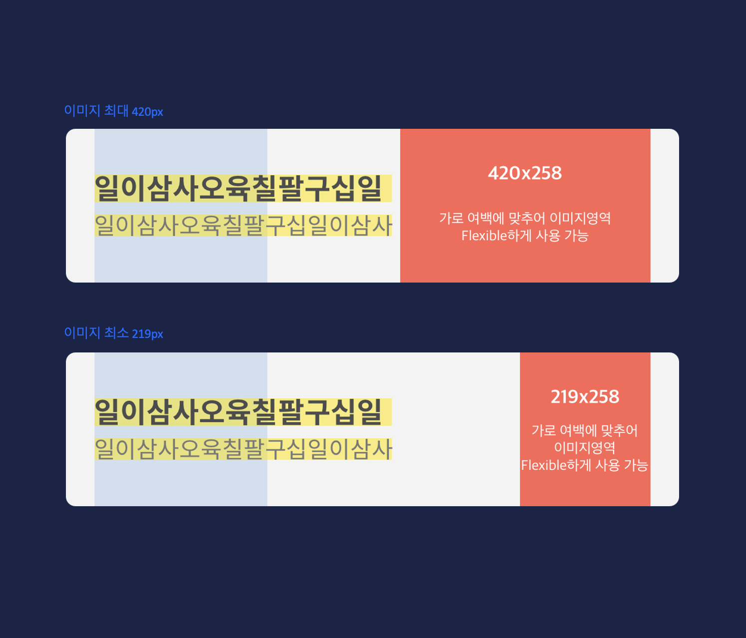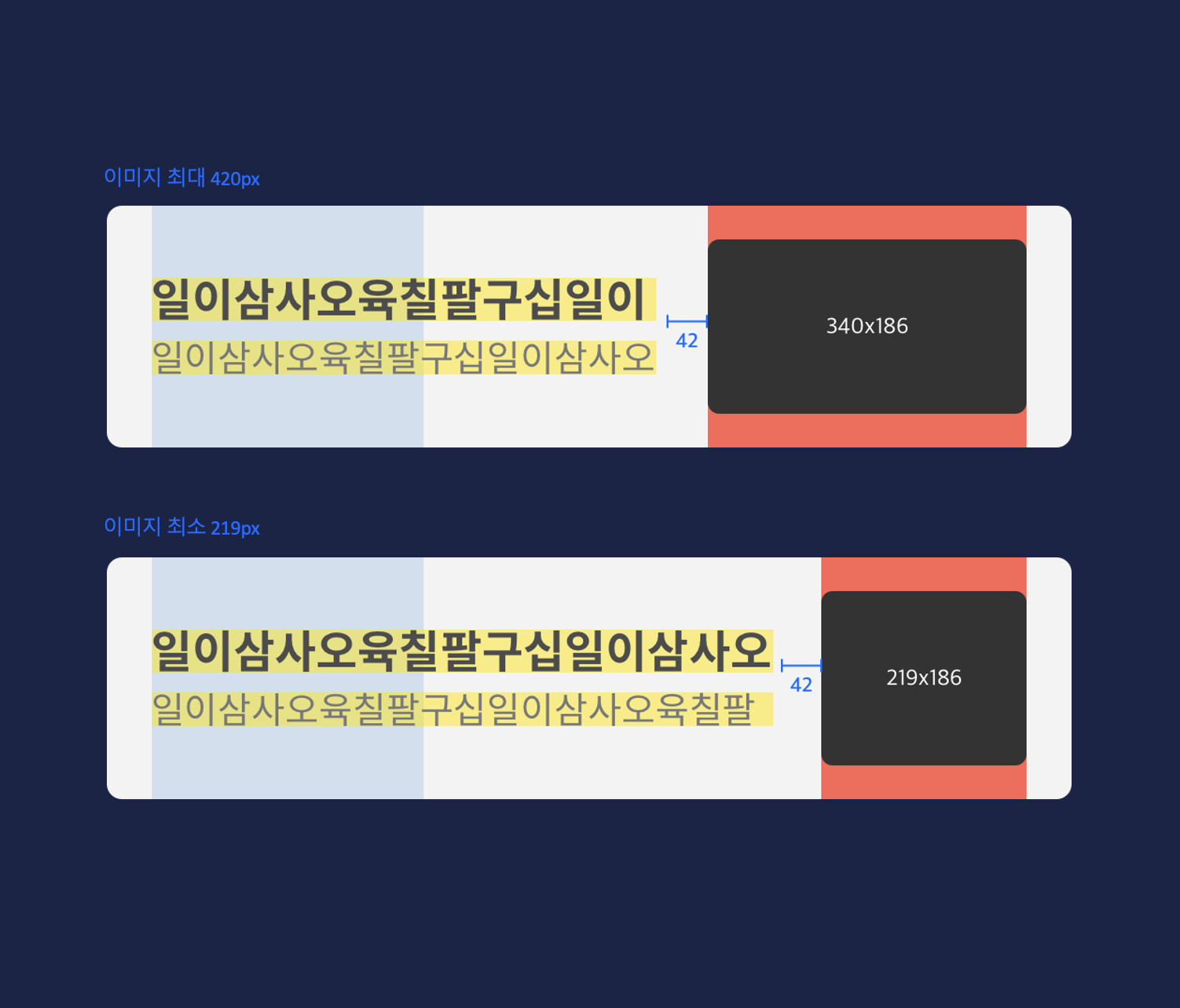 카카오 비즈보드 CPT 오브젝트형에서는 이미지 가로 사이즈를 420px까지, 썸네일 박스형에서는 340px까지 적용 가능합니다.