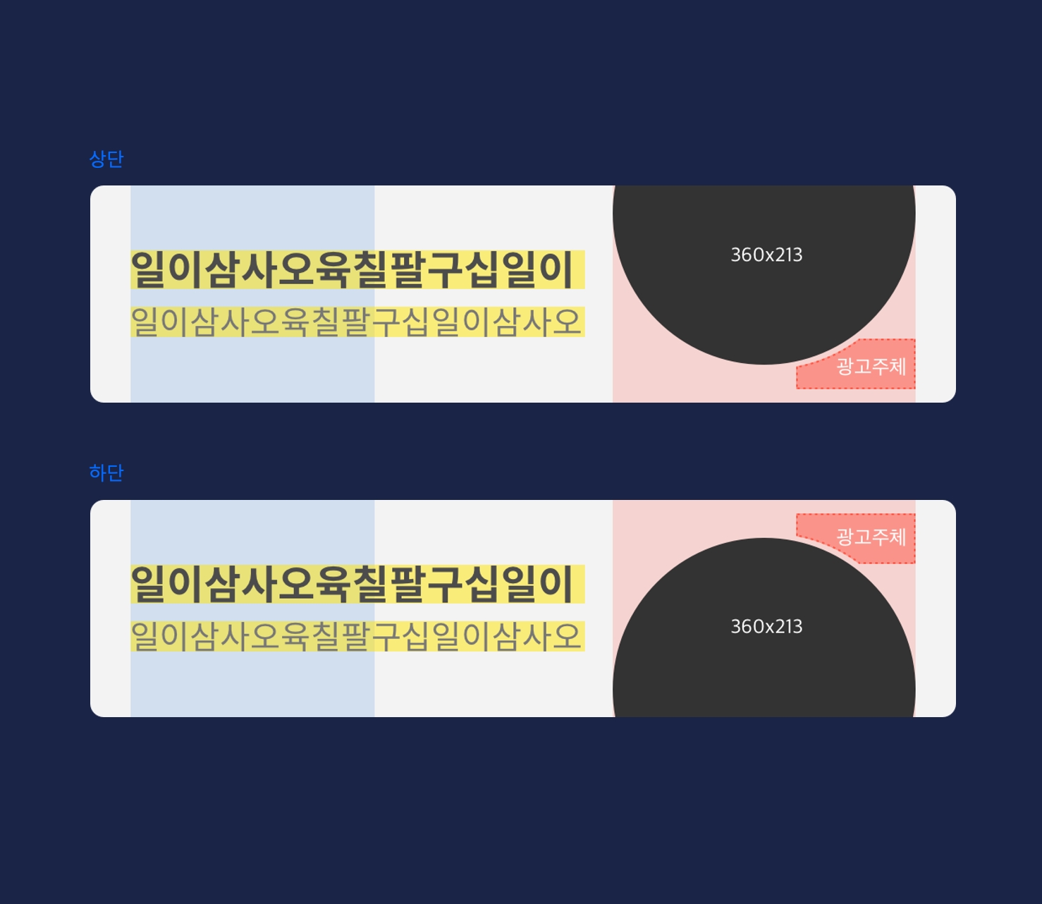 • 메인 카피와 서브 카피 둘 중 하나는 반드시 텍스트 최소 길이(480px)를 준수해서 제작