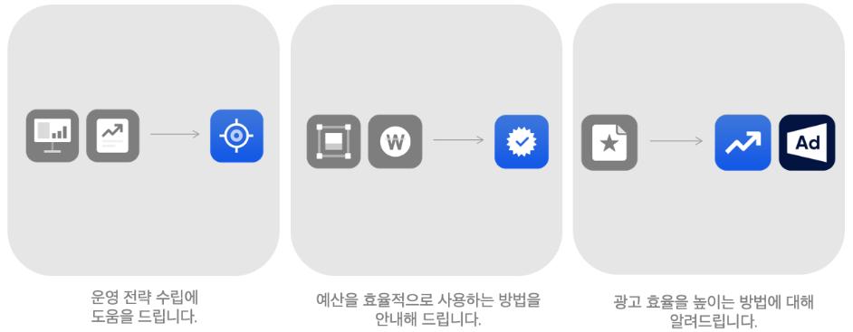 문의하신 광고계정의 운영 상황을 카카오광고 전문 컨설턴트가 모니터링하여 문의 종료 후에도 맞춤 가이드를 제시합니다.\