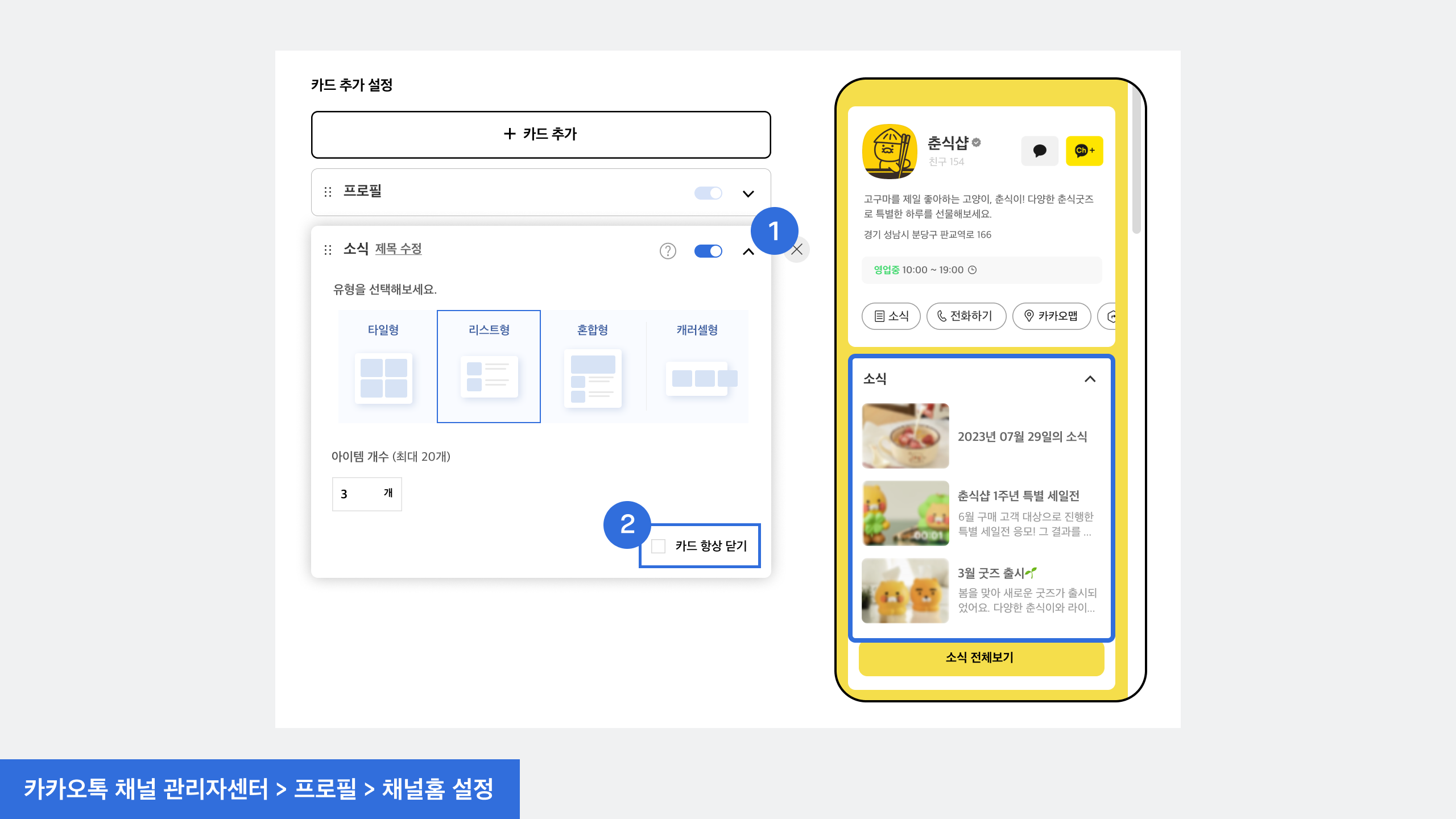 **➊ 소식 카드 설정하기**