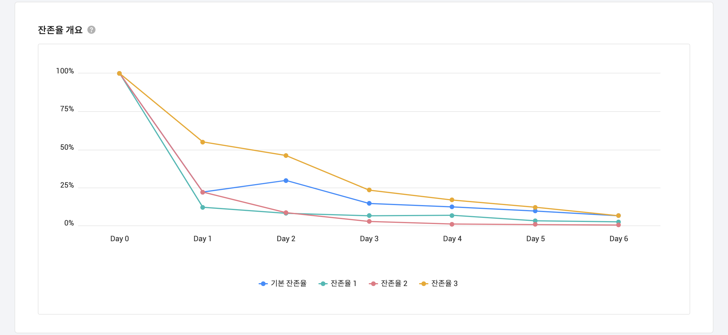 <figure><img src="https://234308570-files.gitbook.io/~/files/v0/b/gitbook-x-prod.appspot.com/o/spaces%2F-MVZVmVOd-5LtENUPqdq%2Fuploads%2FUndMWKy11r6L8xNBGlmL%2Finsight-13.png?alt=media&#x26;token=bbc02b61-18fe-4661-9874-d13f0c65437b" alt=""><figcaption><p>잔존율 개요 그래프</p></figcaption></figure>
